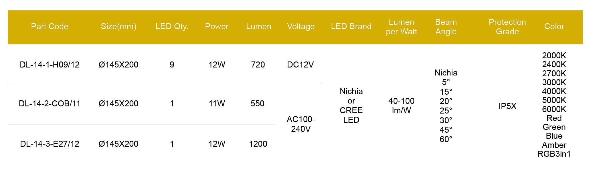 Nichia/Cree or made in Taiwan LED, CRI > 80