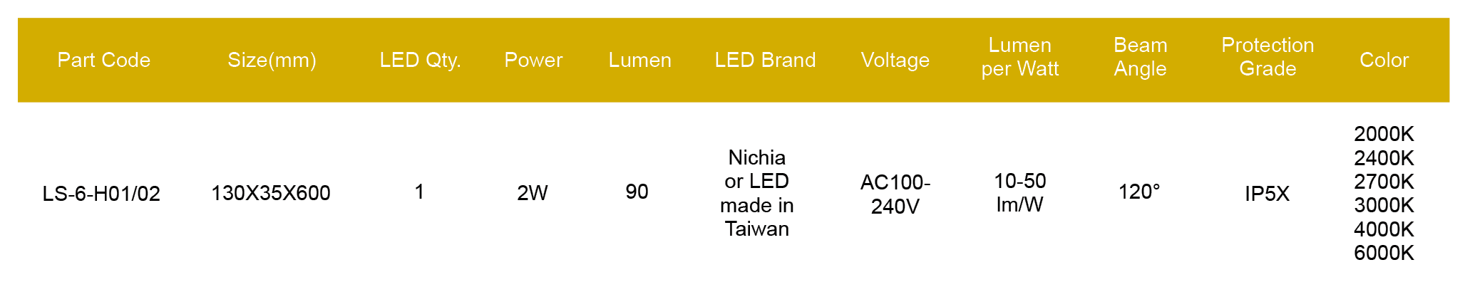 Nichia/Cree or made in Taiwan LED, CRI > 80