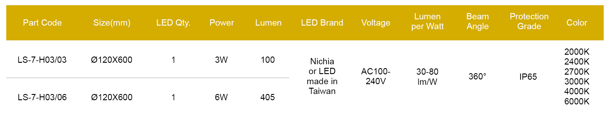 Nichia/Cree or made in Taiwan LED, CRI > 80
