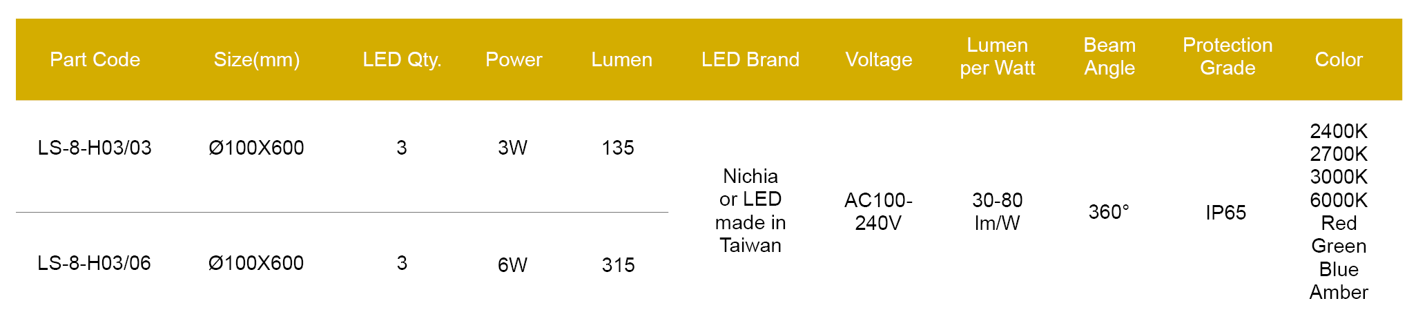 Nichia/Cree or made in Taiwan LED, CRI > 80
