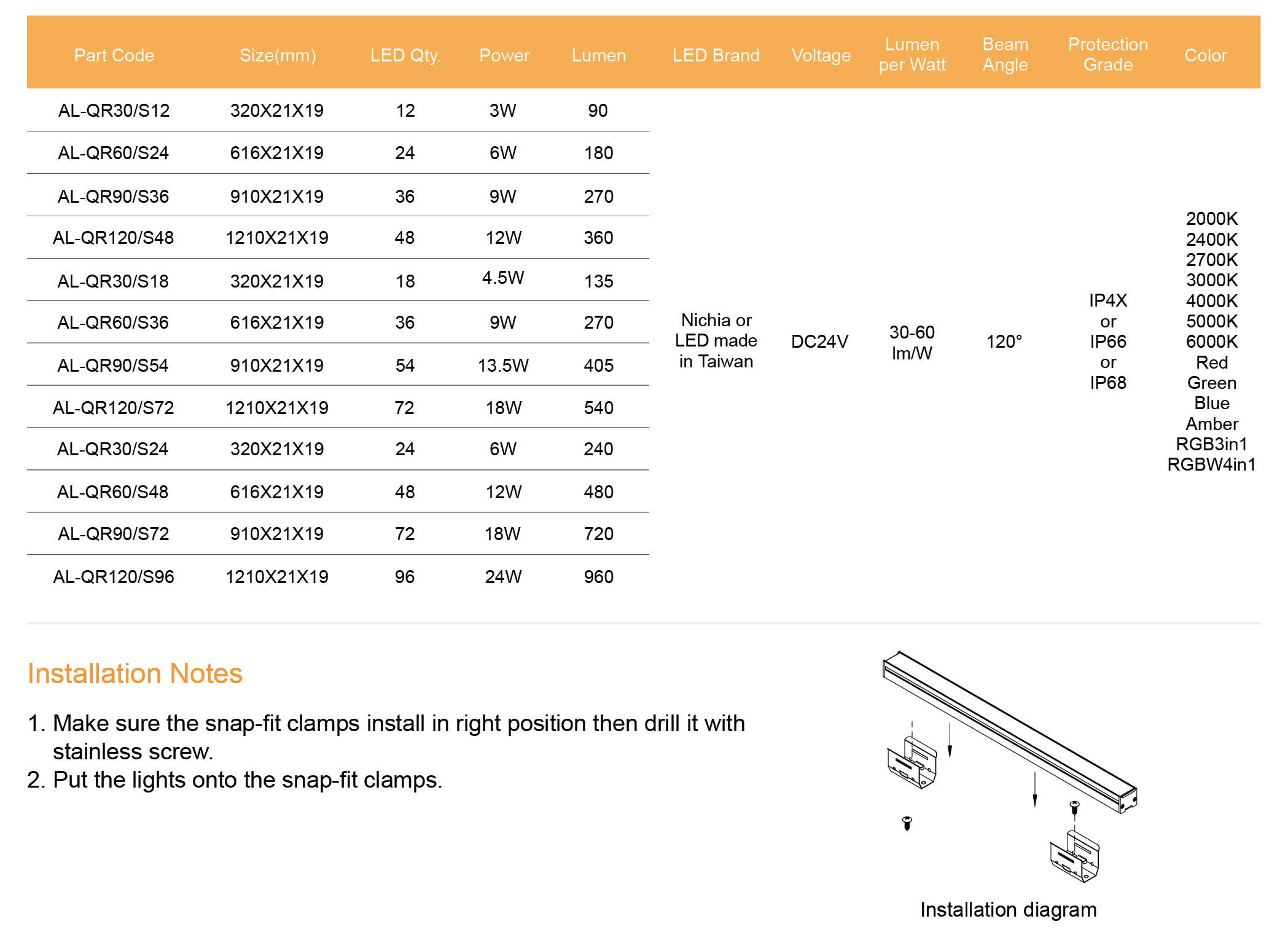 Extruded and Anodized Aluminum & UV Resisted & Optics Diffused PC cover