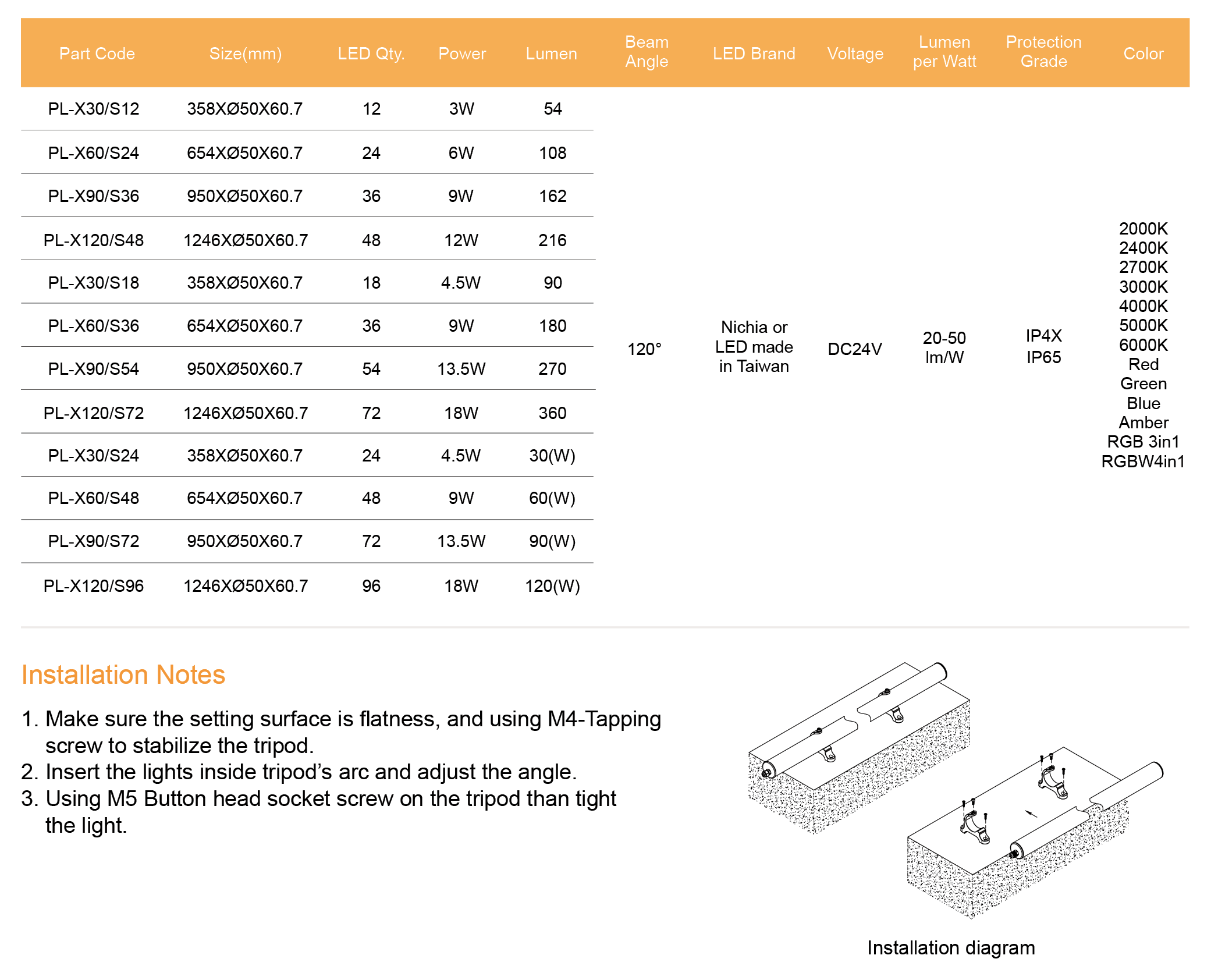 Nichia/Cree or made in Taiwan LED, CRI > 80