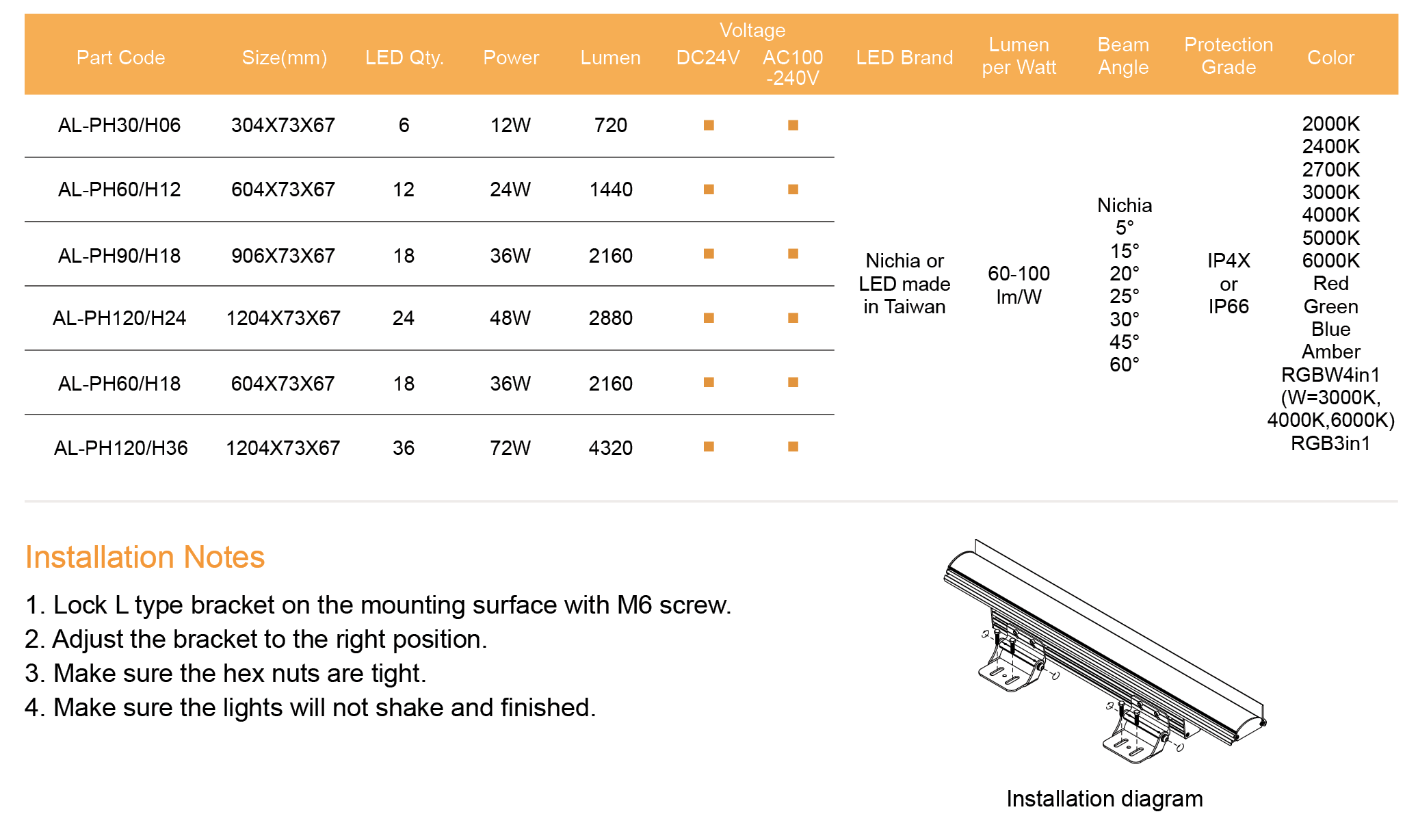 Nichia/Cree or made in Taiwan LED, CRI > 80
