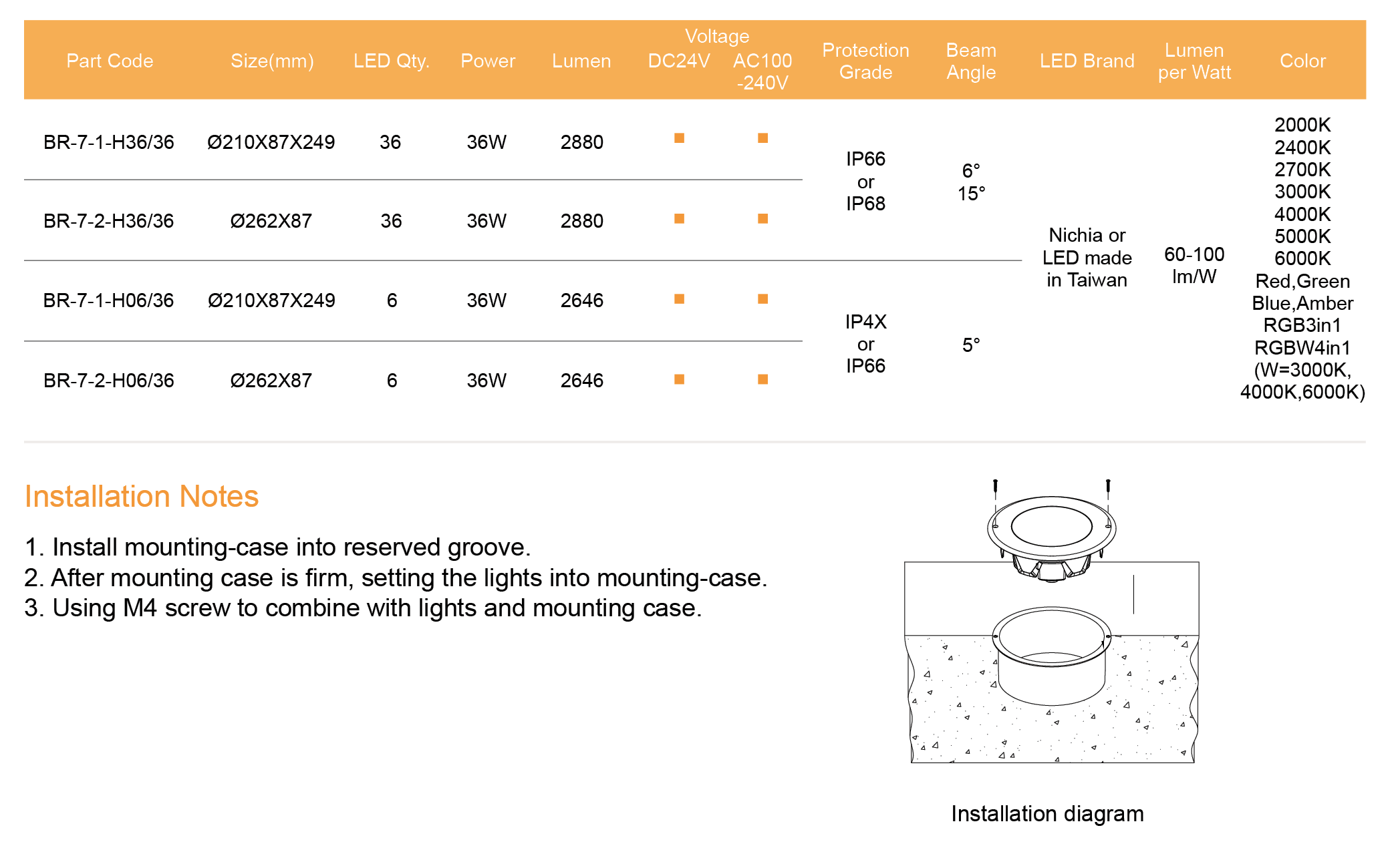 Max. Power: 36W (IP68 mode Max. 50W) / Support IP68 UL rubber wire