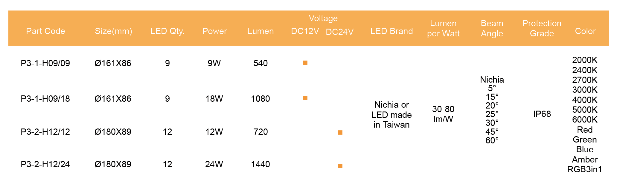 Max.power: 18W(P3-1) / 24W(P3-2)