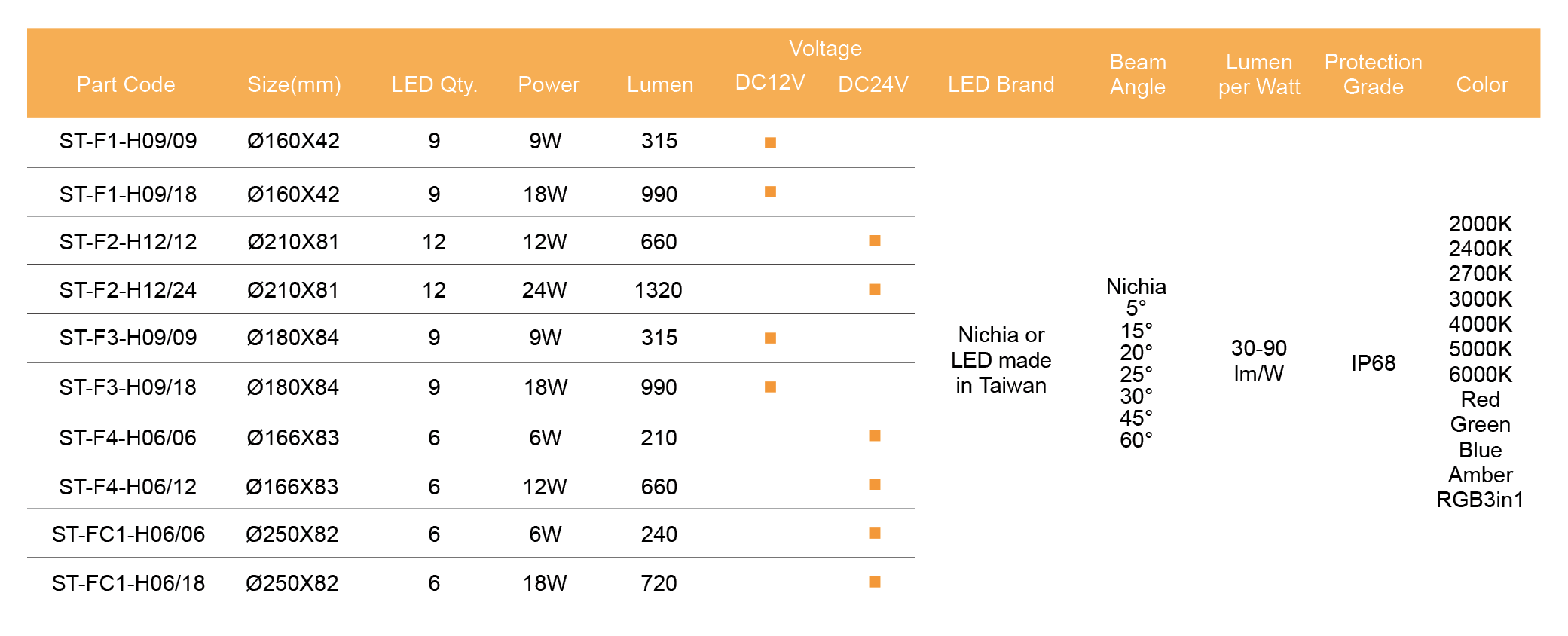 Max.power: 18W(ST-F1) / 24W(ST-F2) / 18W(ST-F3) / 12W(ST-F4) / 18W(ST-FC1)