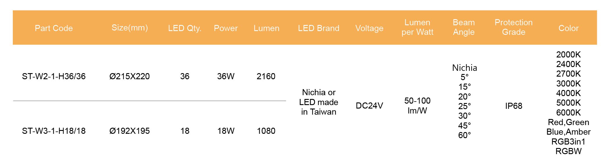 Max. Power: 18W(ST-W3 ) /36W(ST-W2)