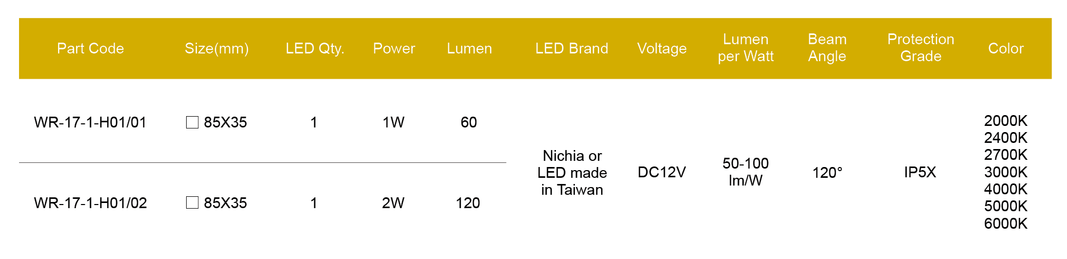 Nichia/Cree or made in Taiwan LED, CRI > 80