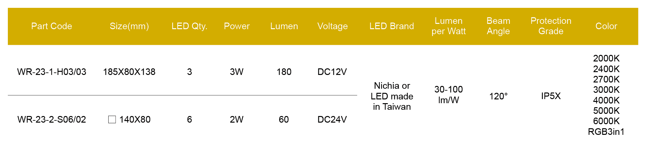 Max. Power: 3W(WR-23-1)/2W(WR-23-2)