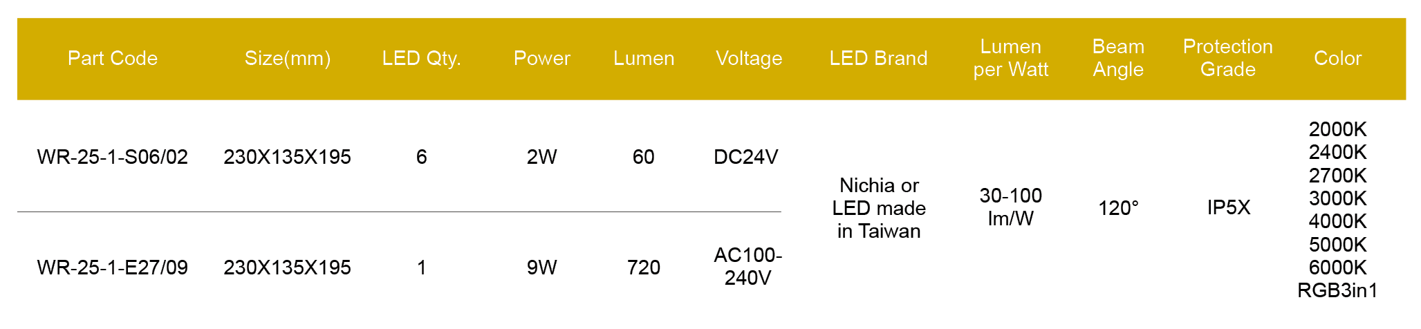 Nichia/Cree or made in Taiwan LED, CRI > 80