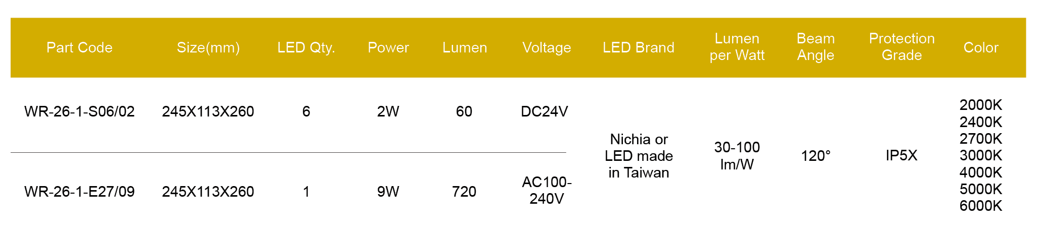 Nichia/Cree or made in Taiwan LED, CRI > 80