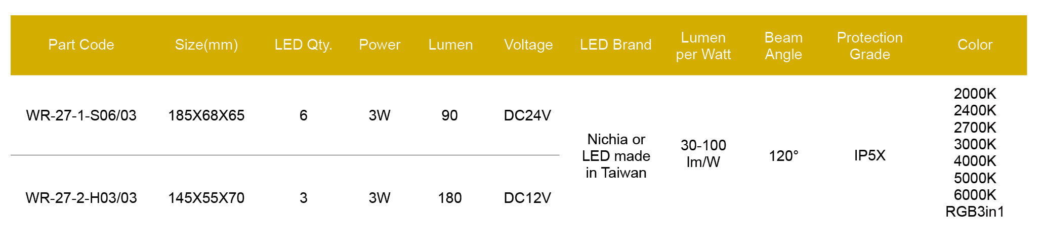 Max. Power: 3W(WR-27-1)/3W(WR-27-2)