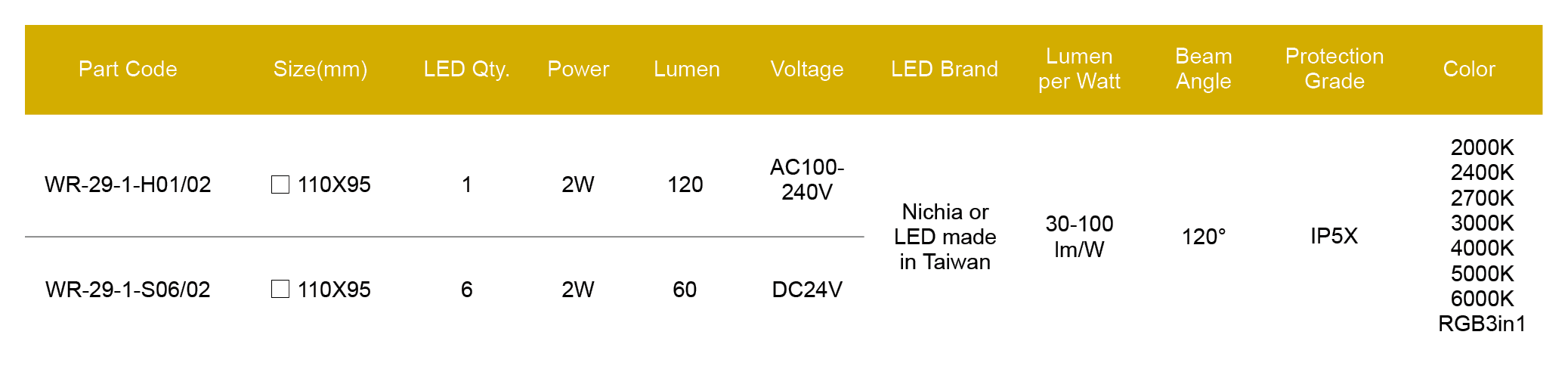 Nichia/Cree or made in Taiwan LED, CRI > 80