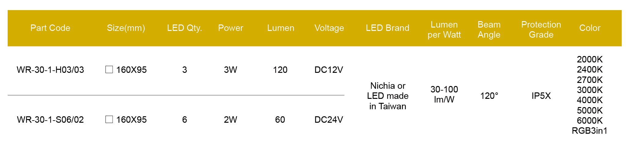 Nichia/Cree or made in Taiwan LED, CRI > 80