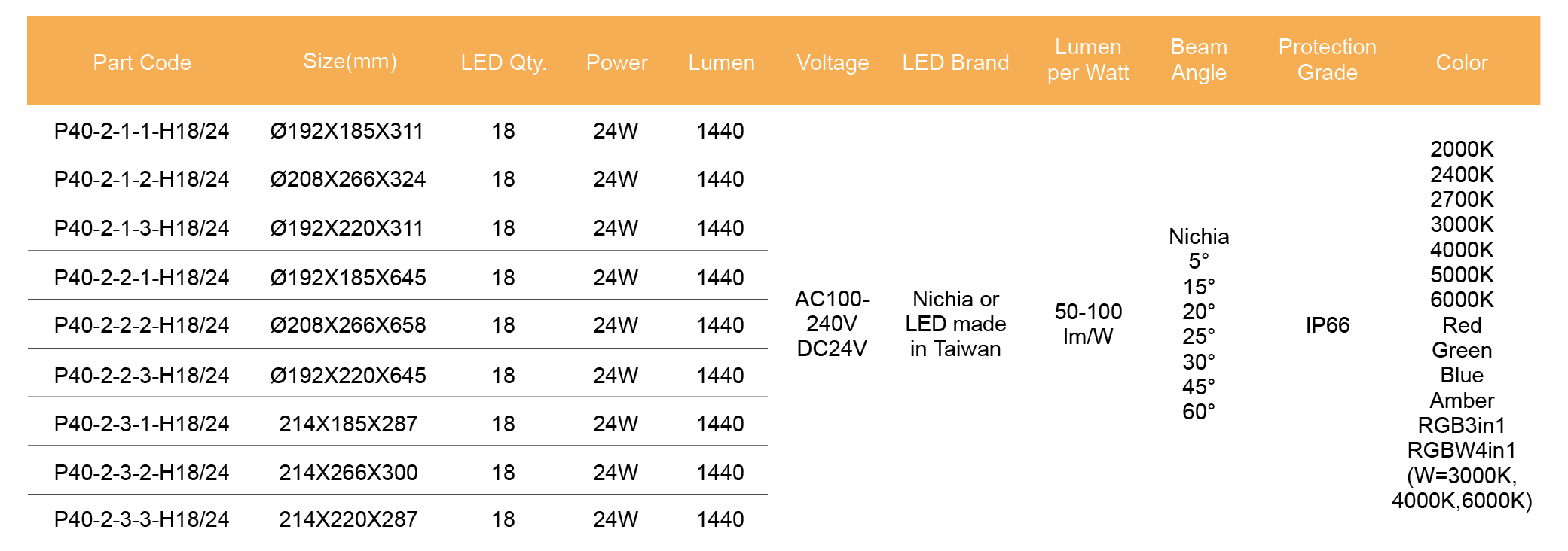 Nichia/Cree or made in Taiwan LED, CRI > 80