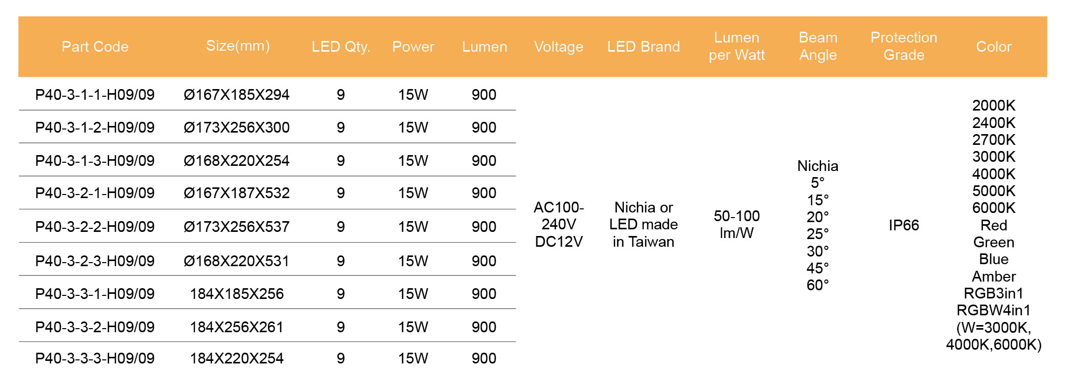 Nichia/Cree or made in Taiwan LED, CRI > 80
