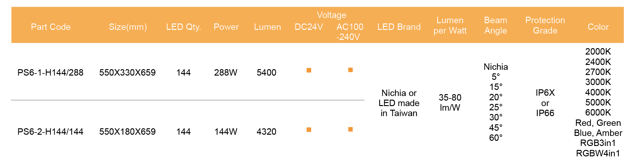 Nichia/Cree or made in Taiwan LED, CRI > 80